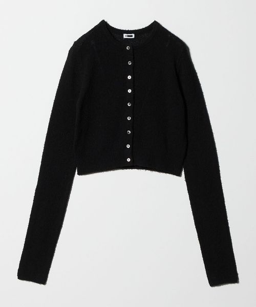 奥行のあるナチュラルな素材感を活かした、シンプルなカーディガンです。クロップド丈&ロングスリーブでバランスをとったメリハリのあるシルエットが特徴です。ドライなタッチと軽さをもつコットンナイロン糸を使用し、糸の角部分を追撚することで表情を出した凹凸のあるカーリーなファンシーヤーンを採用。豊かな表情と対照的に映るクリアなモノトーンカラーが、スタイルにエッジをプラスします。