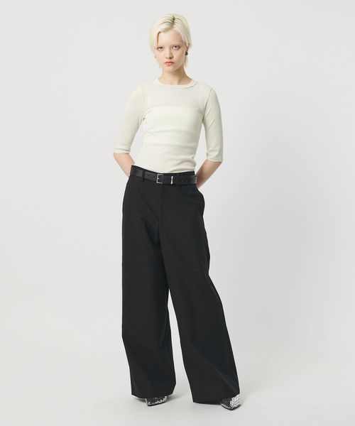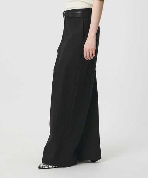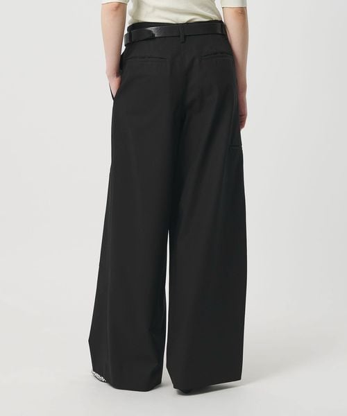 ダブルニーのワークディテールと、クリーンな素材バランスが魅力のワイドパンツです。含浸加工によって張り感を出したコットンツイルを使用しています。タフになりすぎない力の抜けたカジュアルムードが、スタイリッシュで都会的な装いを演出。ダブルニーのステッチやサイドポケットが豊かなニュアンスを生み出し、さりげなくも印象的なスタイルに導きます。腰履きでラフに着こなすのもおすすめです。