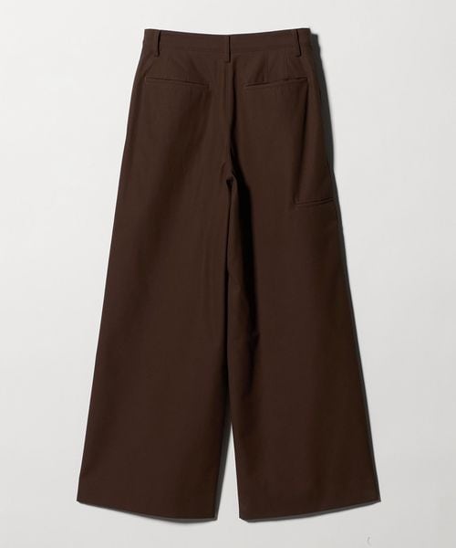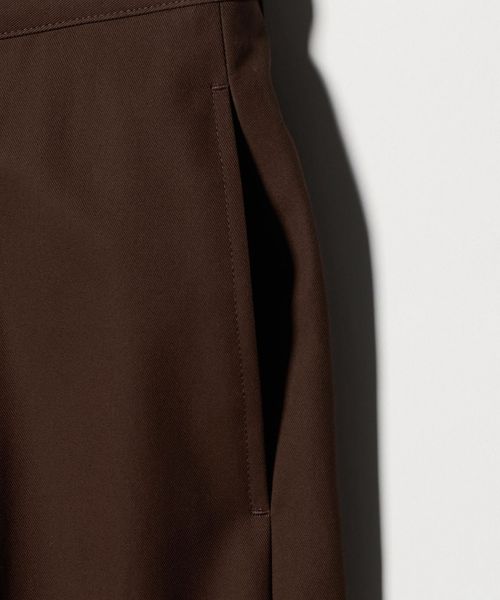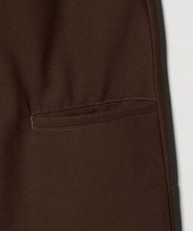 ダブルニーのワークディテールと、クリーンな素材バランスが魅力のワイドパンツです。含浸加工によって張り感を出したコットンツイルを使用しています。タフになりすぎない力の抜けたカジュアルムードが、スタイリッシュで都会的な装いを演出。ダブルニーのステッチやサイドポケットが豊かなニュアンスを生み出し、さりげなくも印象的なスタイルに導きます。腰履きでラフに着こなすのもおすすめです。