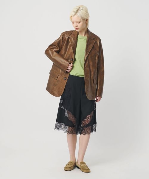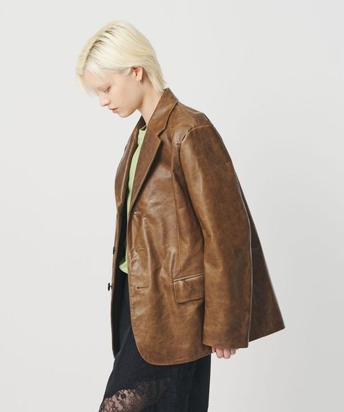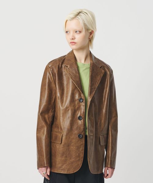 ヴィンテージ感のある仕上げを施したカウレザージャケットです。ツヤ感とムラによる表情が、奥行のある魅力を放ちます。やや狭めのVゾーンに3つボタンを配したクラシカルなデザインで、カジュアルパンツやミニ丈のボトムとも好相性。存在感のある佇まいが、まとうだけでファッションムードを高め、シンプルなコーディネートにスパイスを添えます。