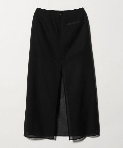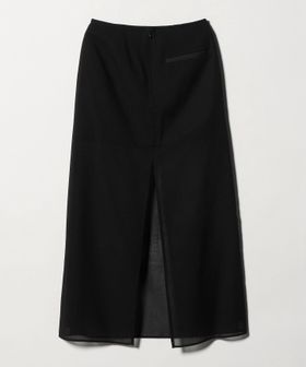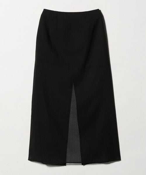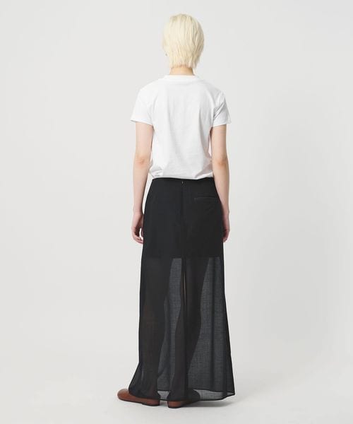 透け感を活かしたレイヤード仕立てのロングスカートです。毛羽立ちの少ないすっきりとした表面感の毛×ポリエステルを使用したボイル生地を採用。ディテールをそぎ落したミニマルなデザインで、ミニ丈にシアーなロングスカートを重ねたセンシュアルな佇まいが魅力です。シンプルなトップス合わせも決まりやすく、オーディナリーな着こなしにさりげないインパクトと抜け感を添えます。