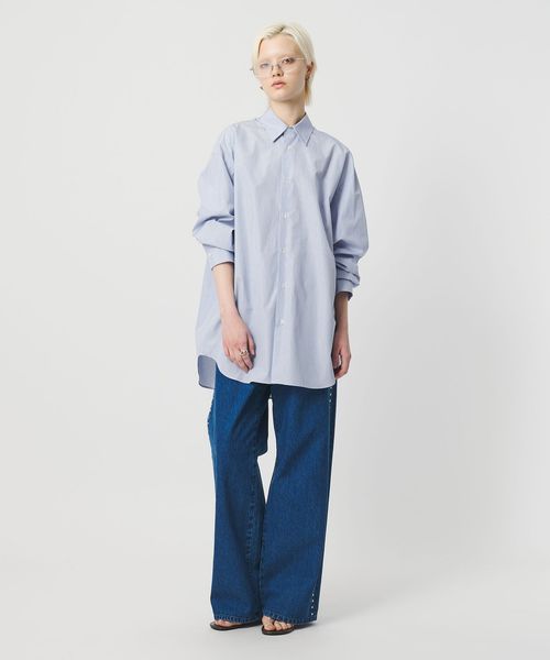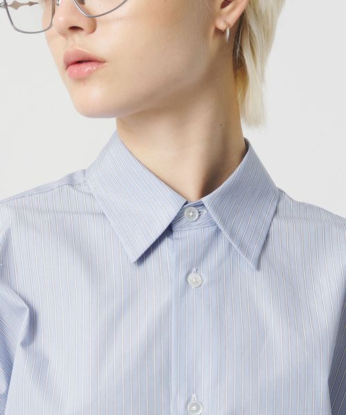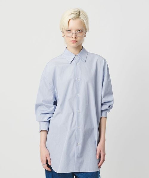 老舗生地メーカー「THOMAS MASON」社のコットンブロードで仕立てた、クリーンな印象のストライプシャツです。生地が生み出す上質な風合いに、シャープなレギュラーカラーが洗練されたムードを演出。やや大きめに設定したリラクシーなサイズバランスが、肩肘張らない大人のアーバンスタイルを叶えます。マルチストライプが奥行とスパイスを添え、カジュアルにもモードにも幅広く寄り添うおすすめの一着。