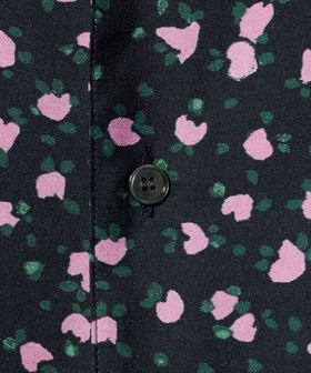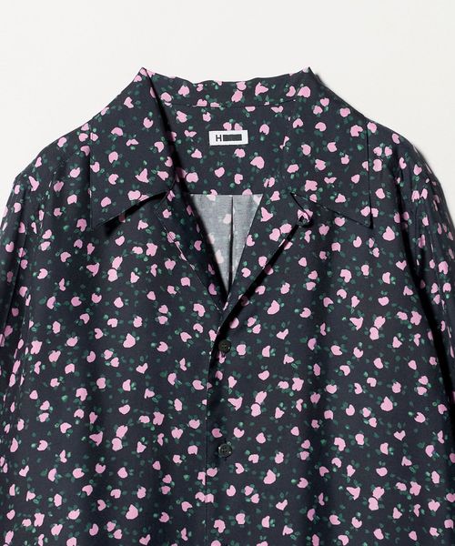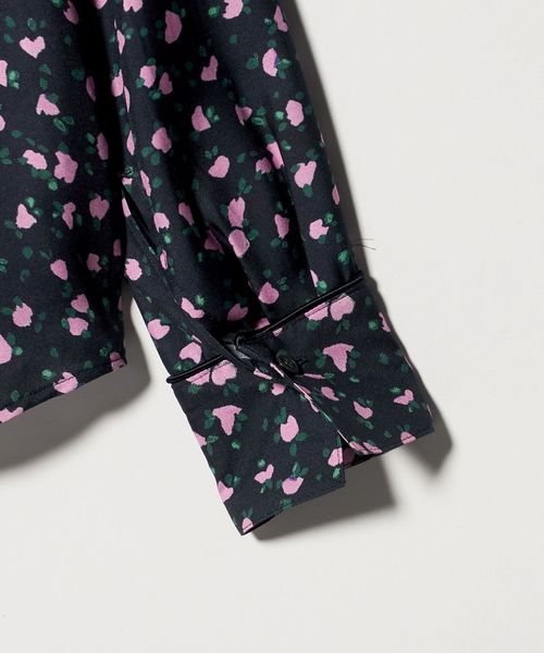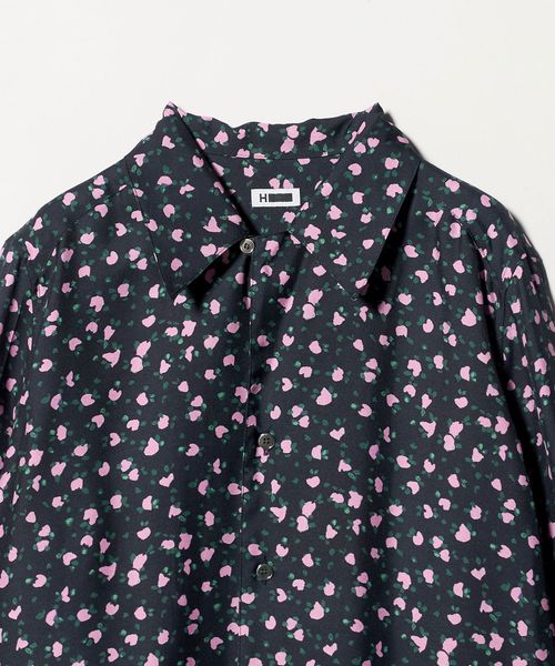 ロングポイントの襟とノスタルジックな柄が目を惹くプリントシャツです。程よい張り感と落ち感を併せ持つレーヨンシルクツイルを採用しています。開放感のあるオープンカラーと、袖に施したパイピングディテールが、ヴィンテージムード漂う愛らしい一着に。カジュアルなデニムはもちろん、トレンドのハーフパンツ合わせで軽快に楽しむのもおすすめです。