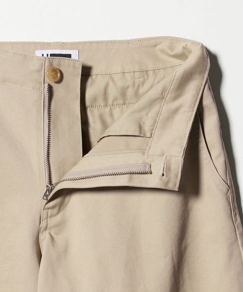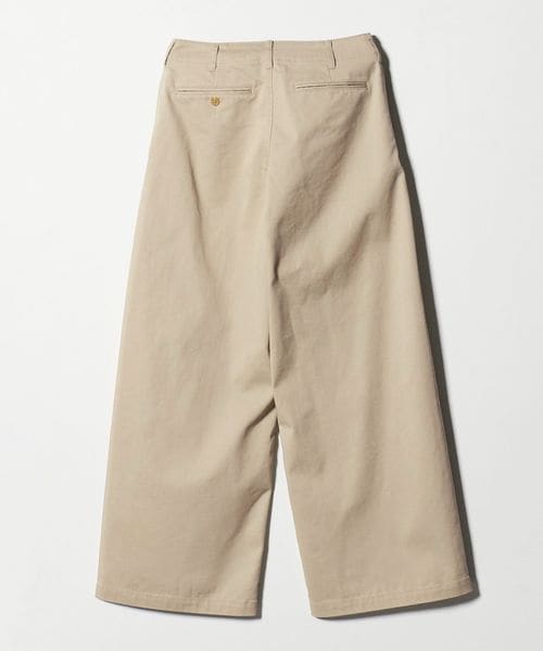 カジュアル感もありつつ、クリーンなムードで仕上げたチノパンツです。ウエスト周りはすっきりとさせ、しっかりとした太さのあるボリュームシルエットが存在感を引き立てます。コットンとポリエステルの風合いを活かしたTCギャバジンを使用し、製品加工にてヴィンテージライクに仕上げました。シンプルでありながら、計算尽くされたフィーリングが高揚感を生み、洗練されたカジュアルスタイルを演出します。