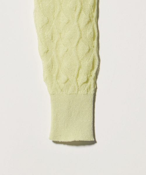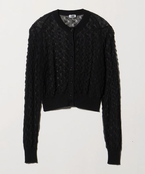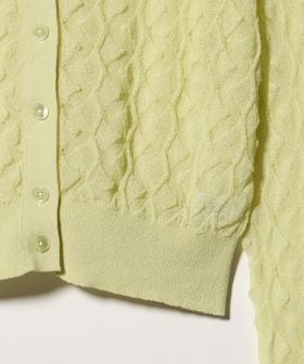 透かし編み模様が印象的なサマーニットカーディガンです。幾何学的なオープンワークニットの表情がモダンで都会的なムードを添えます。コットンナイロンのさらりとしたタッチが心地よく、凹凸感のある涼やかな表情も魅力。カジュアルからきれいめまで幅広く寄り添う存在感で、シーズンスタイルをスタイリッシュに彩ります。