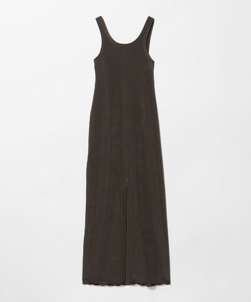 ボディラインに沿うカービーシルエットが魅力のマキシ丈ワンピースです。上品な光沢をまとった、リブ見えながらフィット感のあるジャージー生地で仕立てました。シャープなデザインが洗練された印象を添え、メロー始末の裾と深めのバックスリットが軽やかな抜け感をプラス。一枚でさらりと着こなすのはもちろん、ジャケットとのスタイリングもおすすめです。