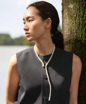 ファインジュエリー工房の職人たちとのコラボレーションによって、かたちの歪んだバロックパールや、宝石彫刻を扱う伝統工芸士が削り出した天然石など、主に有機的な素材を使用したジュエリー製作が特徴です。
