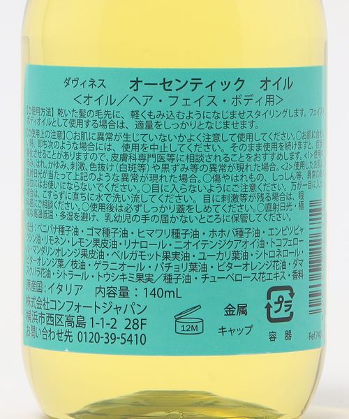 髪だけでなく顔や体にも使用できる植物由来99%のマルチオイルです。天然の恵みを豊富に含み、ウェットなヘアスタイルを演出。ベニバナ油などのオーガニック由来成分をふんだんに使用しています。