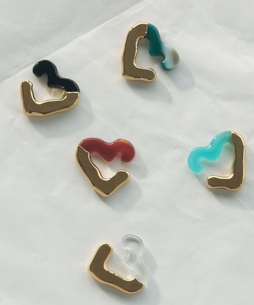 <PREEK>ストーン×メタルコンビの、モダンなハート型イヤーカフ