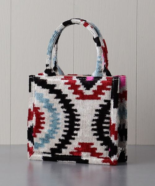 ヴィンテージムード漂う華やかなテキスタイルが目を惹くバッグです。シンプルな装いのアクセントとして、日常の装いに高揚感を与えてくれる一品。