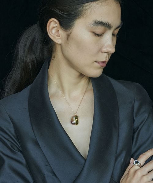 ファインジュエリー工房の職人たちとのコラボレーションによって、かたちの歪んだバロックパールや、宝石彫刻を扱う伝統工芸士が削り出した天然石など、主に有機的な素材を使用したジュエリー製作が特徴です。