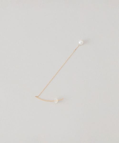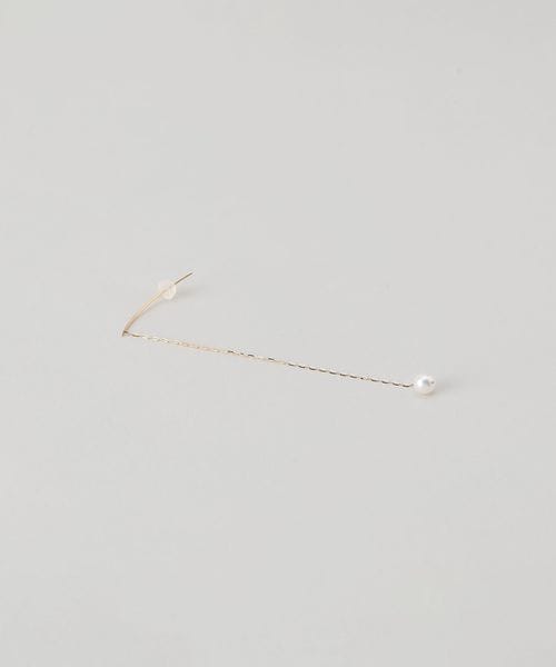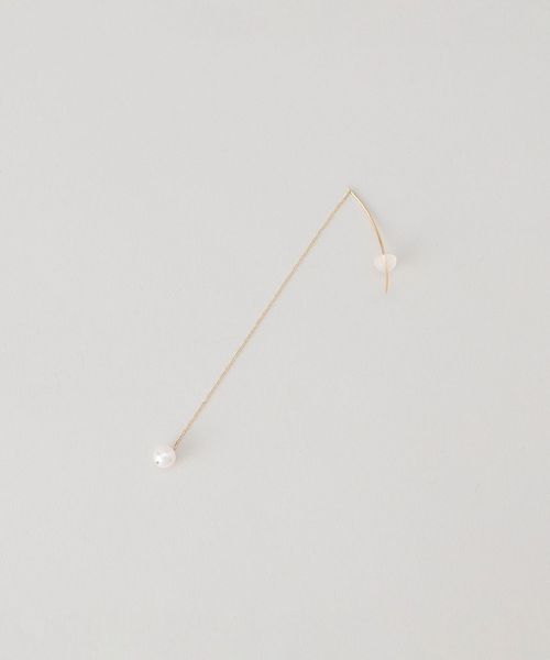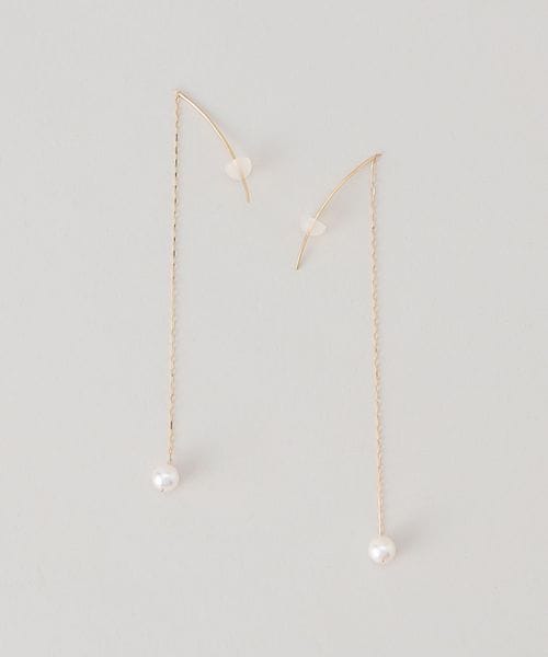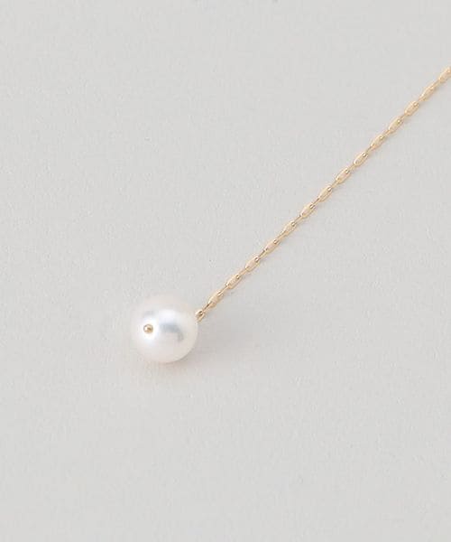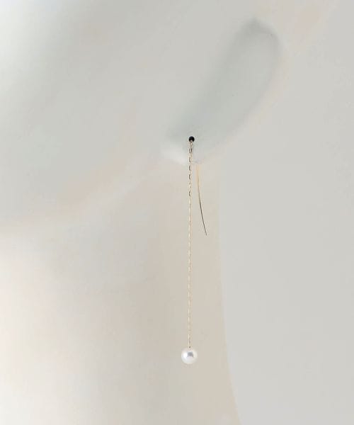 アコヤパールのシンプルなアメリカンピアスです。揺れるパールと華奢なチェーンが顔周りを美しく彩りながら、個々のフェミニティを昇華します。シャープで繊細な表情が、カジュアルにもきれいめにも合わせやすく、タイムレスに活躍する一品。