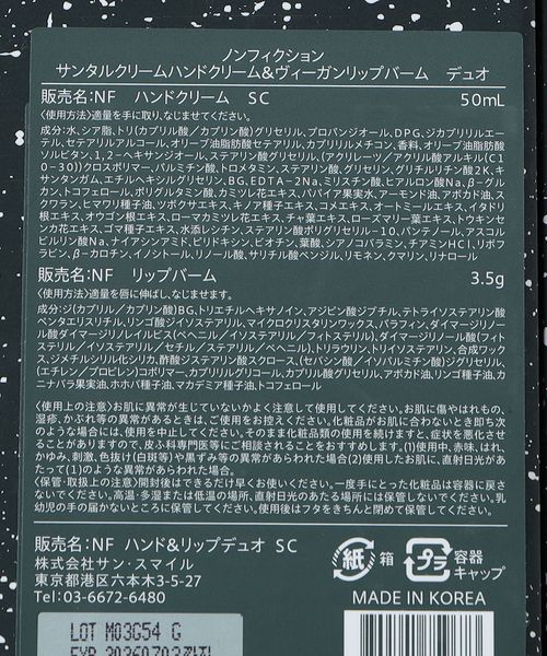 <NONFICTION>SANTAL CREAM HAND CREAM & LIP BALM SET/ハンドクリーム&リップバーム