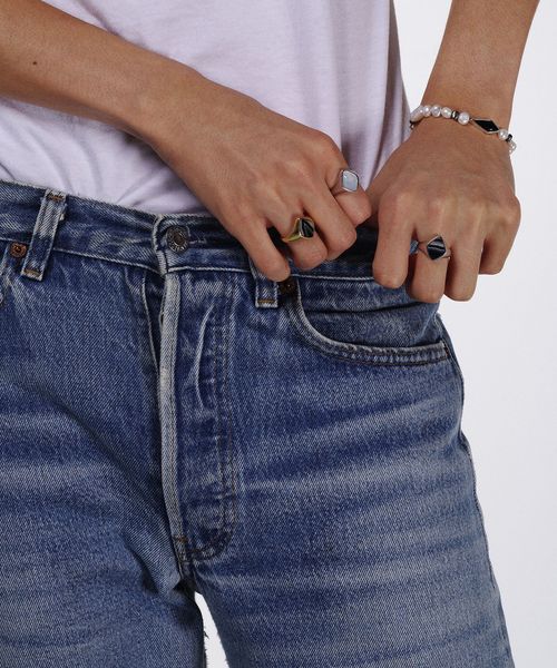 天然素材を使用した、ダイヤシェイプ型リングです。シャープな中にもやわらかさを纏った美しいデザイン。ぽってりとしたボリュームが存在感を与え、印象的な手元を演出します。
