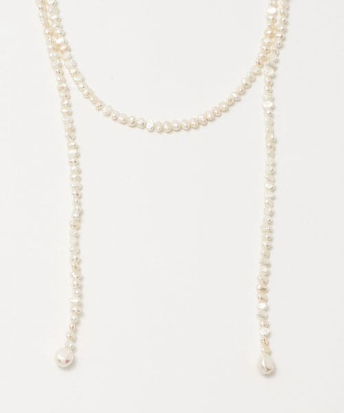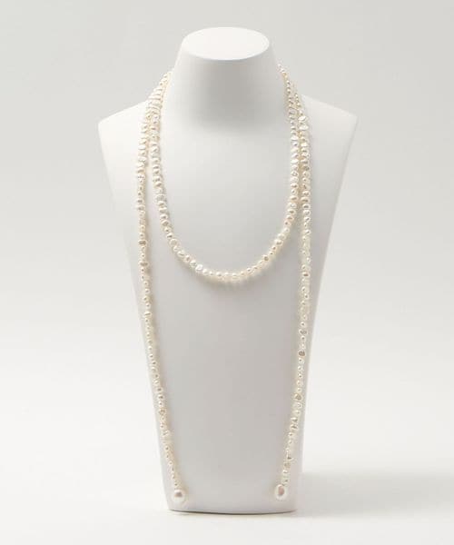 バロックパールを贅沢に用いた、フリースタイルのロングネックレスです。首元に巻き付けるシンプルなデザインは、お好みのスタイルでアレンジが可能です。使い方によってベルト使いもでき、カジュアルから特別なシーンまで幅広く活躍します。