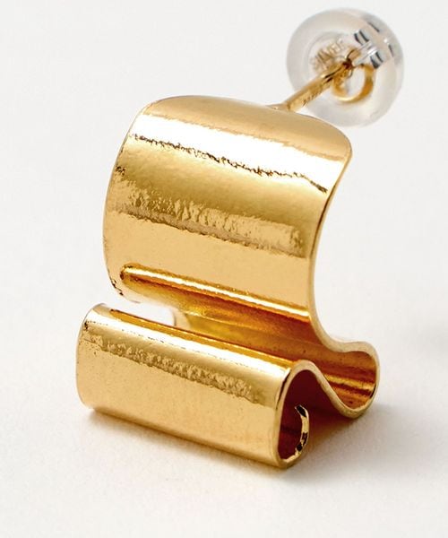 アールデコチェアから着想を得た、優美なデザインのプレートピアスです。不規則にシェイプした温かみのある表情が、さりげなくもモダンなムードを演出します。デイリーカジュアルにはもちろん、特別なドレスアップスタイルにも華やかなアクセントを添えてくれます。