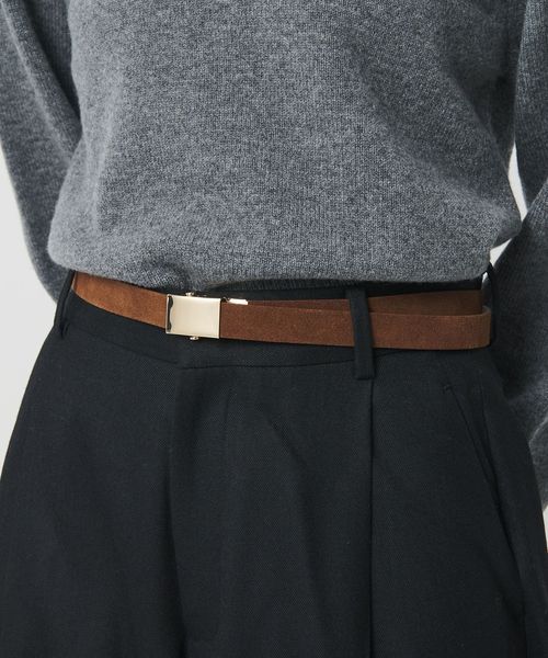 スエードレザーとゴールドカラーバックルのコンビネーションが美しいガチャベルトです。品のある2cm幅に、ステッチの無いミニマルなデザインがタイムレスに活躍します。