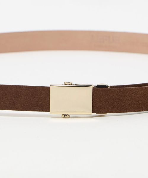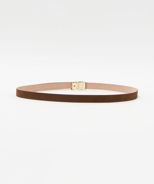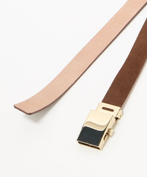 スエードレザーとゴールドカラーバックルのコンビネーションが美しいガチャベルトです。品のある2cm幅に、ステッチの無いミニマルなデザインがタイムレスに活躍します。