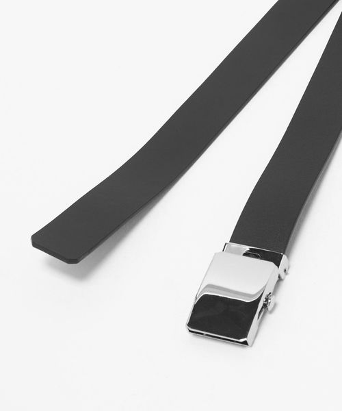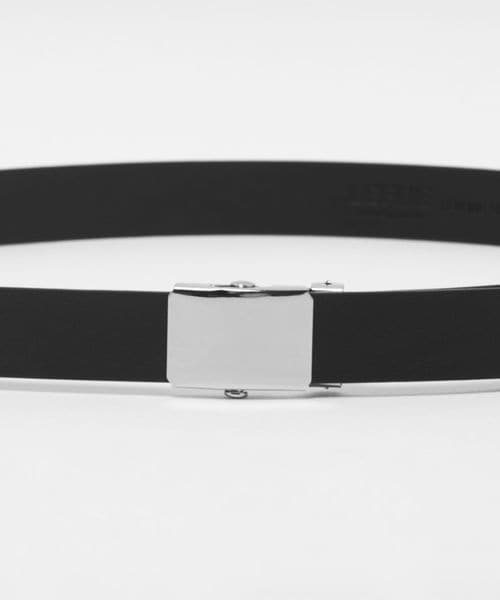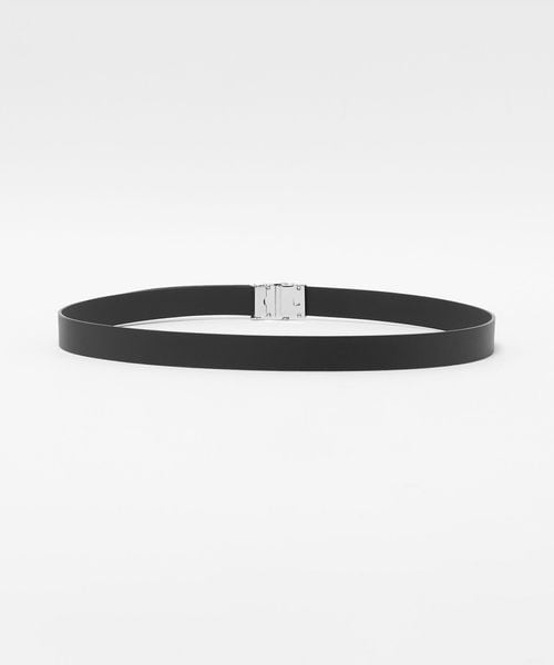 上品なレザーとシルバーカラーバックルのコンビネーションが美しいガチャベルトです。使い勝手の良い2.5cm幅に、ステッチの無いミニマルなデザインがタイムレスに活躍します。