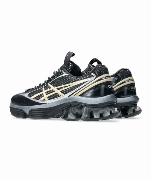 Kiko Kostadinov StudioとASICS SportStyle開発チームが監修したスタイル。US6-S GEL-KINETIC FLUENTは、STREAL 361サッカースパイクと洞窟のコンセプトからインスピレーションを得ています。アッパー構造は、テクニカルな溶接とハトメを特徴とし、独自のツートンメッシュとグラデーションスプレーで装飾されています。これらのディテールは、ビジュアルアーティストのEdith Dekyndの影響を受け、デザインに奥行きと質感の両方を加える現代的な素材を融合させています。