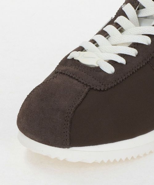 1972年に誕生したNIKE初のシューズ「CORTEZ」。フィードバックに基づいてレトロな魅力はそのままに、オリジナルデザインを一新。合成繊維とスエードを組み合わせたこのエディションでは、つま先部分を広げ、硬めのサイドパネルを配しました。温かみのあるブラウンカラーに、セイルカラーのスウッシュがアクセントになり、メリハリの利いた美しい2トーンカラーに仕上がっています。