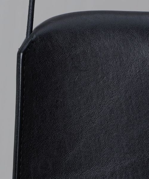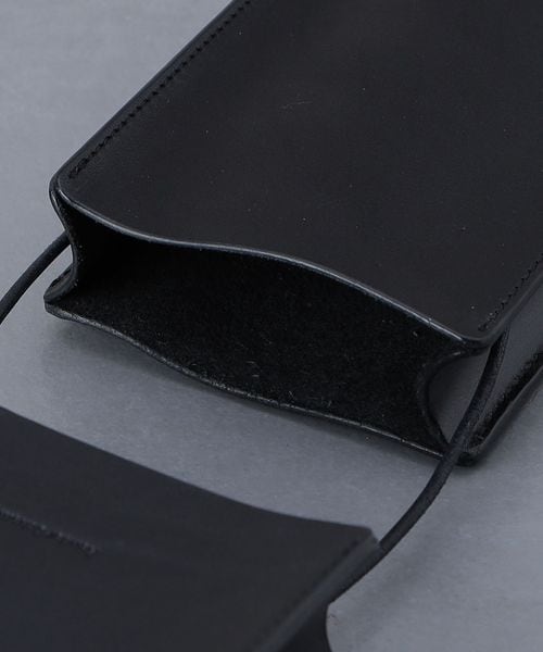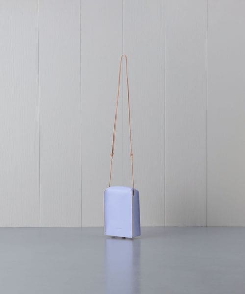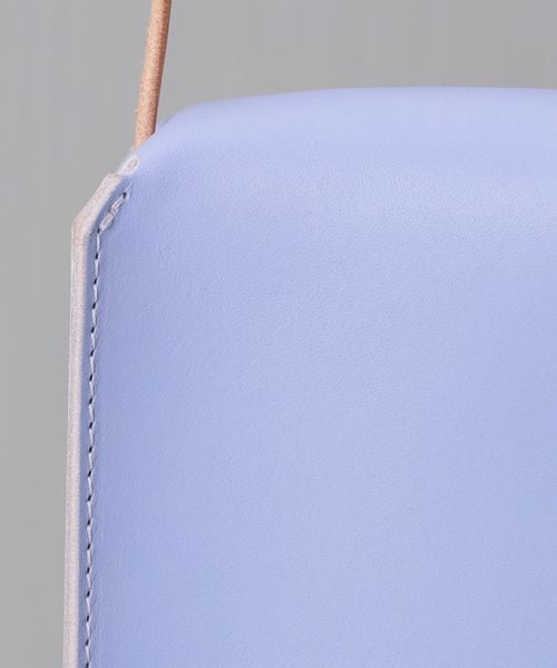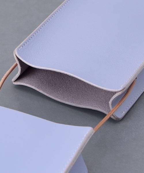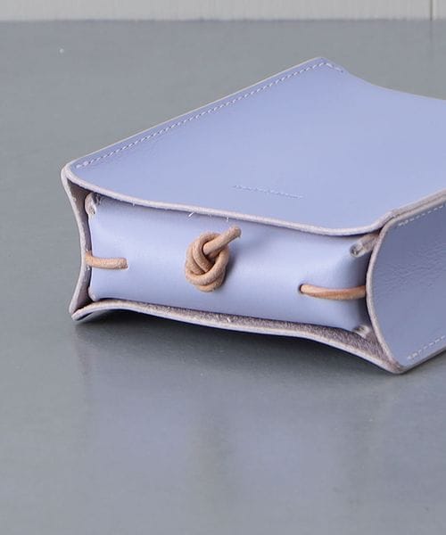 スマートフォンや小型のウォレットが収まるサイズ感のボックス型ショルダーケースです。上蓋にストラップを通した設計で、ストラップをスライドさせることで簡単に開閉が可能です。