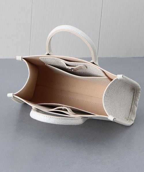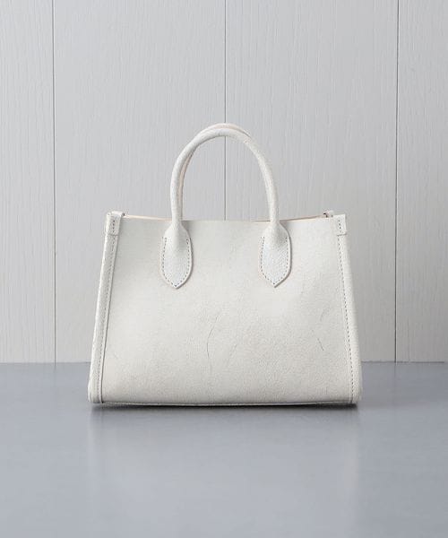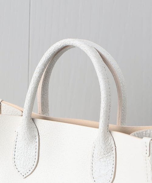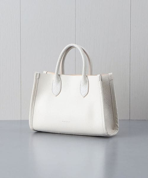 ワイドなボディとショートハンドルが特徴のミニマルなハンドバッグ「sophie」。クラックレザーの表情が存在感を演出します。