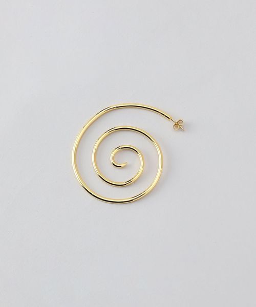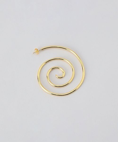 大ぶりなスパイラルモチーフが目を惹くピアスです。心奪われるキャッチーなデザインが、顔周りを華やかに印象付けます。