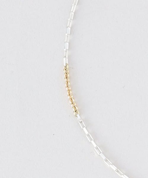 シルバーとゴールドを組み合わせたアシンメトリーなデザインが魅力のネックレスです。繊細なチェーンに溶け込んだ異素材のコンビネーションが、胸元を豊かに彩ります。