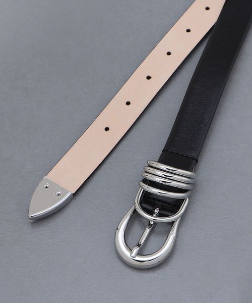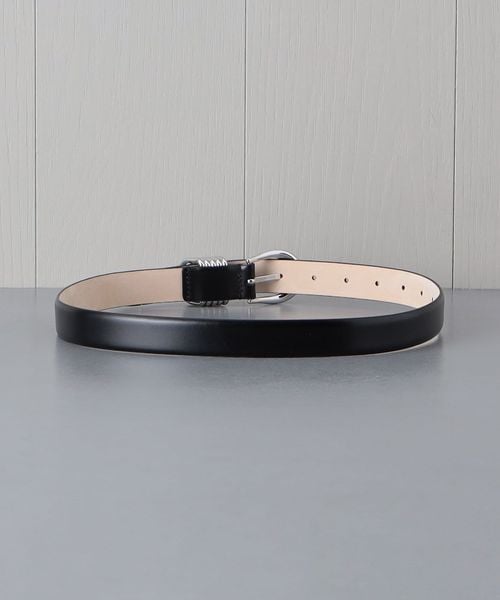 シルバーカラーの バックル、リング、ベルトチップがアクセントになった2.5cm幅のレザーベルトです。艶めきをまとった贅沢なディテールが存在感を与え、シンプルな装いも豊かなムードへ導きます。
