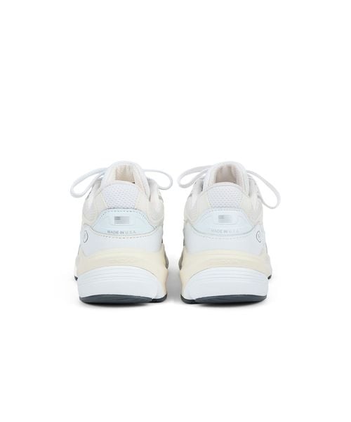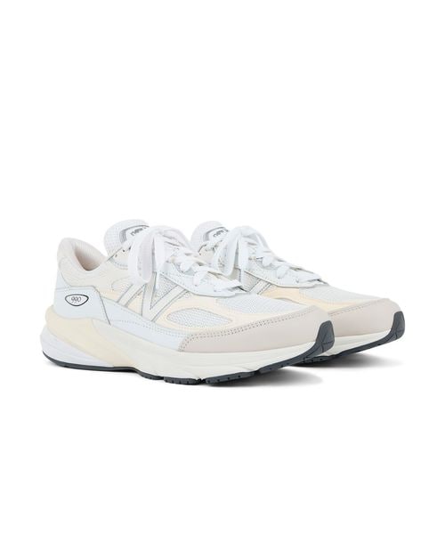 テディ・サンティス監修による2025SSコレクションモデル。生誕40周年を記念しアップデートされた「M990」の最新バージョン「v6」モデルをベースに、異素材をアッパーに駆使し、かかとの側面には「990」のバッジ、更新されたソール ユニットの上にある後部の新しいヒール クリップが装着されたデザインに仕上がっています。