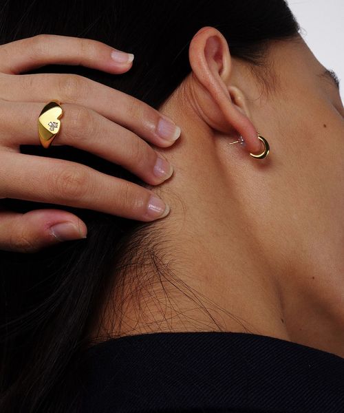 3石のダイヤモンドを埋め込んだハートリングです。崩したようなハートシェイプに、さりげない煌めきを添えた特別なデザイン。ご自身へのご褒美にはもちろん、大切な方への贈り物としてもおすすめです。