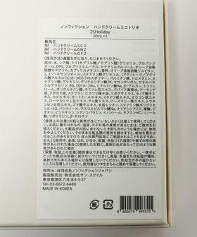 ノンフィクションで最も愛されている3つのベストセラーの香りのハンドクリームミニトリオです。「SANTAL CREAM」、「GENTLE NIGHT」、「GAIAC FLOWER」の3種をHOLIDAYパッケージに入れたボックス仕様。ご自身用として楽しんだり、特別なギフトにもおすすめです。