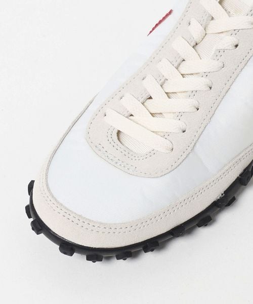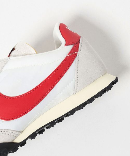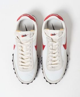 1977年に誕生した「WAFFLE RACER」。ワッフルメーカーから着想を得て発明されたワッフルソールを搭載した一足を現代的にアップデート。レザーと合成繊維を組み合わせたレトロランニングらしいアッパーに、NIKEのアーカイブカラーを踏襲しています。