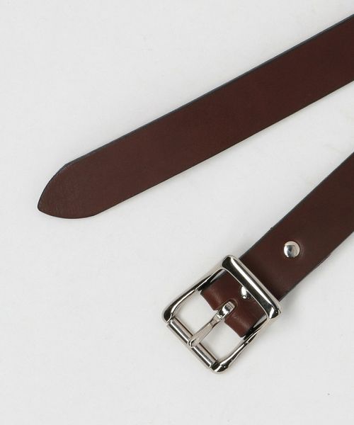 カシメとバックルのメタリックな光沢がアクセントになったベルト。
