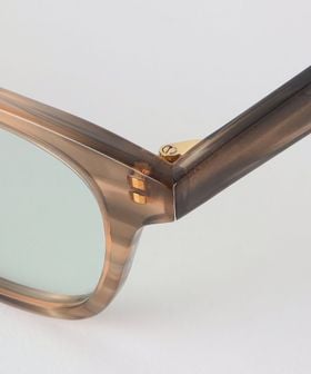 シックな色味のセルフレームやカラーレンズ、テンプル内側のロゴなども印象的で、モダンな表情の一品です。