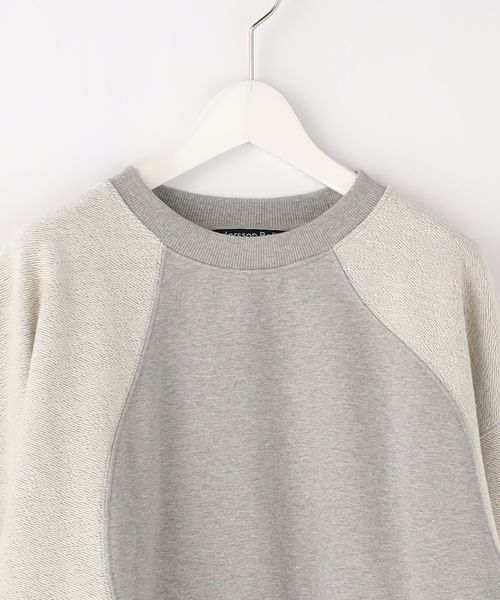 アシンメトリーな切り替えが個性的なスウェット。