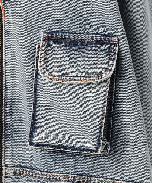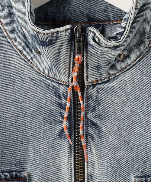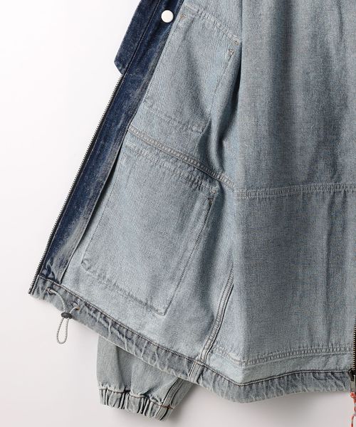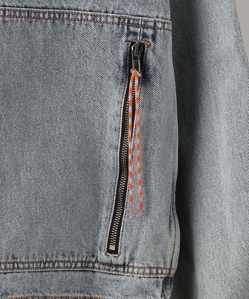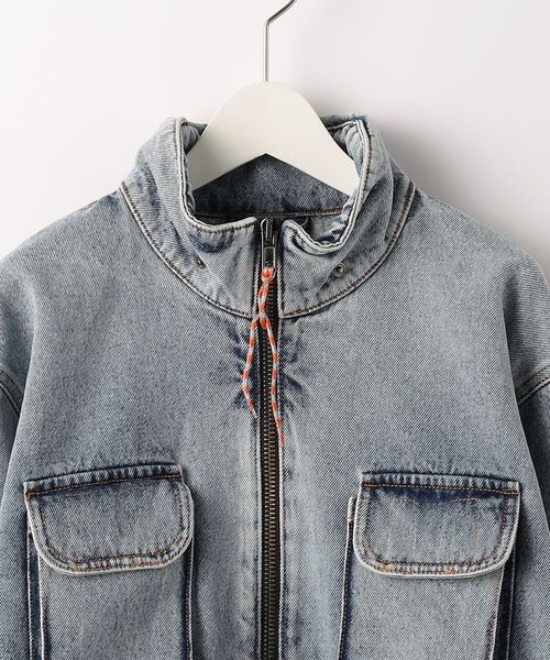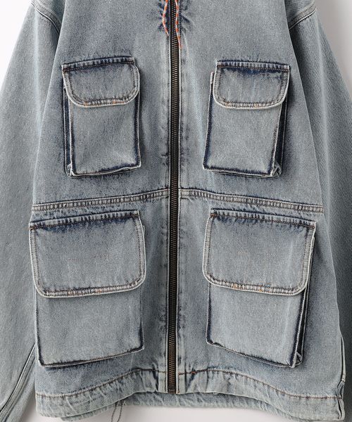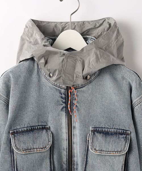 ブリーチを掛けたデニム素材を用いたジャケット。