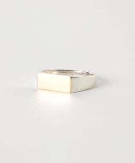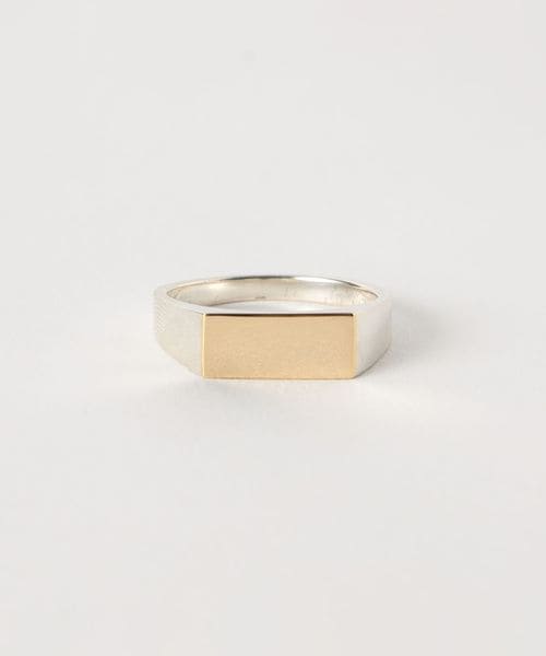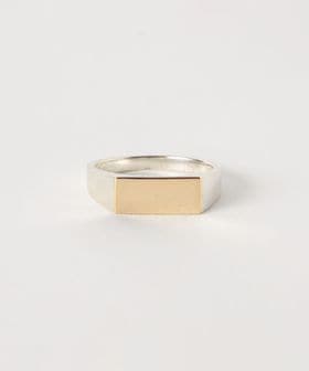 スクエア型のシグネット部分をゴールドカラーにしたリング。