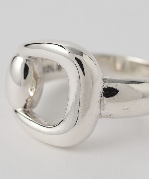 ビットの半分を輪状に曲げたようなデザインが個性的なリング。