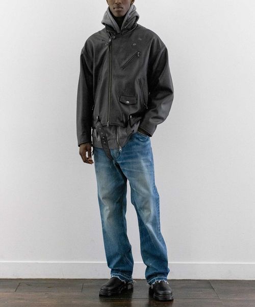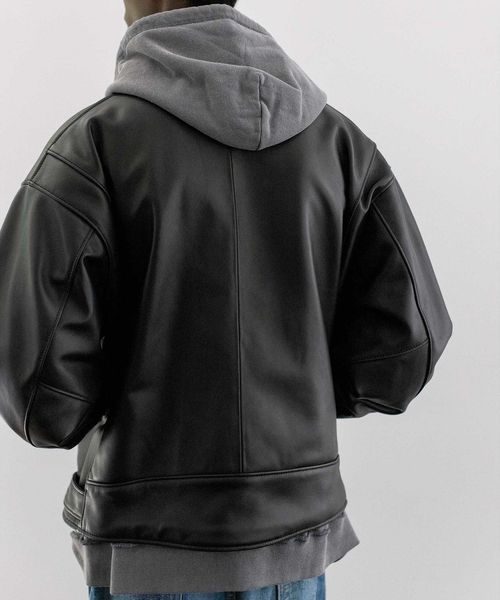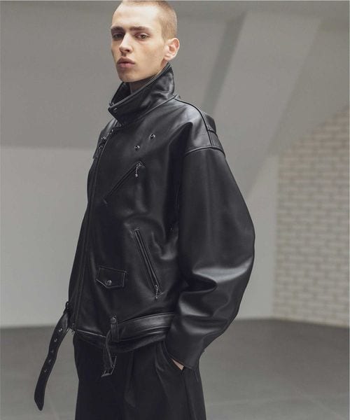 <monkey time> シープ レザー オーバーサイズ ダブルライダースジャケット