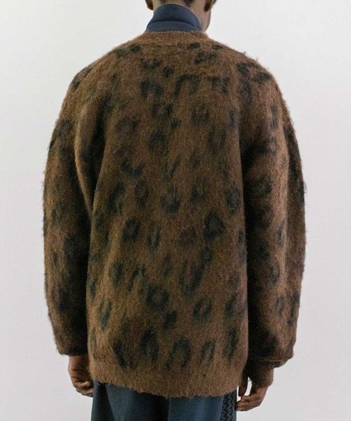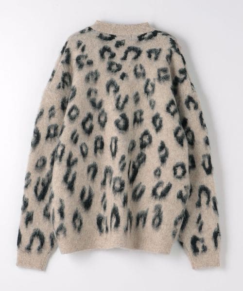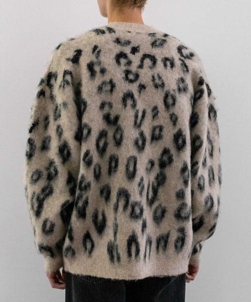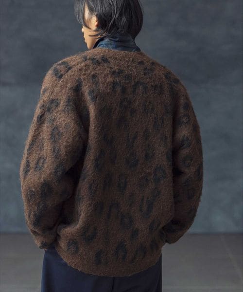 レオパード柄をジャカード編みで表現したVネックカーディガン。