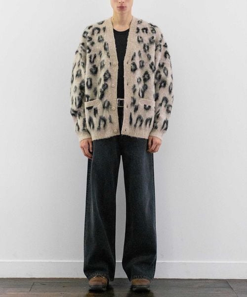 <monkey time> レオパード ブラッシュド モヘヤ カーディガン