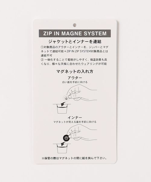 アウタージャケットを連結できるジップインマグネシステム対応モデルで、アウターの連結にはマグネットを採用。