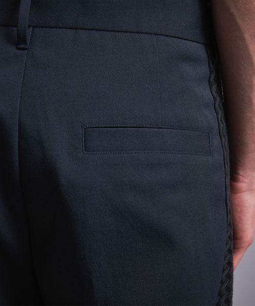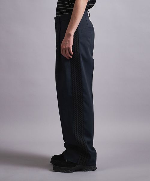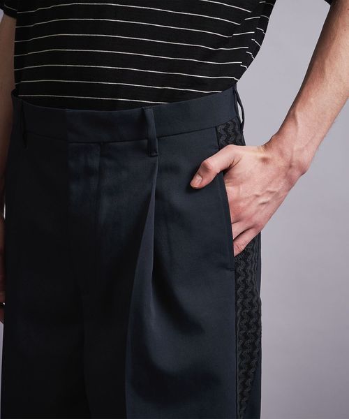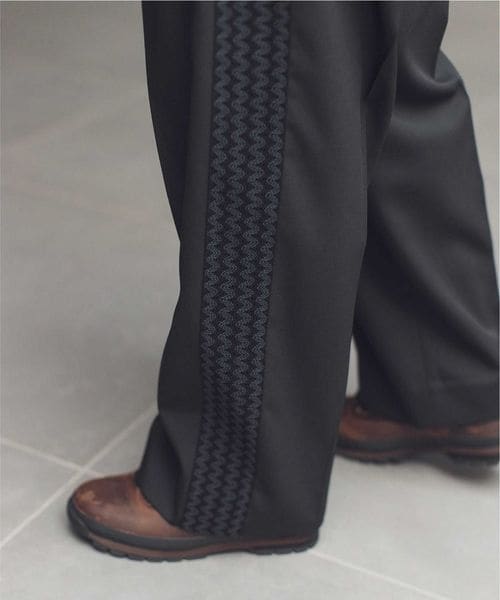 <monkey time>でご好評頂いているサイドレースパンツをきれい目にアップデートした一着。