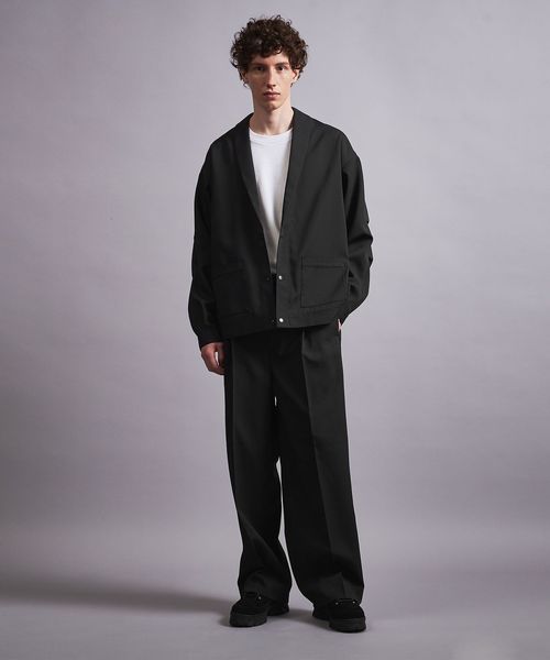 本体の素材には軽やかなエアカルゼを採用し、裾までストンと落ちるストレート気味なワイドシルエットに仕上げています。