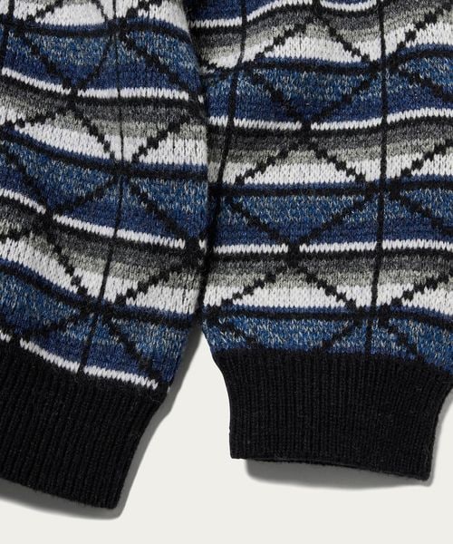 <PENDLETON>のアーカイブの中でも、多色使いが目を惹くジャガード柄のニットをベースにアレンジした別注ニット。