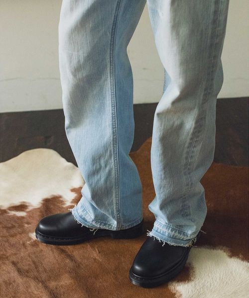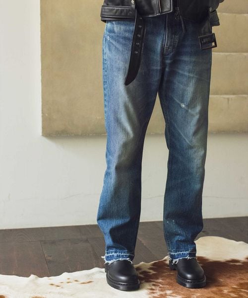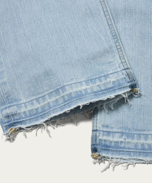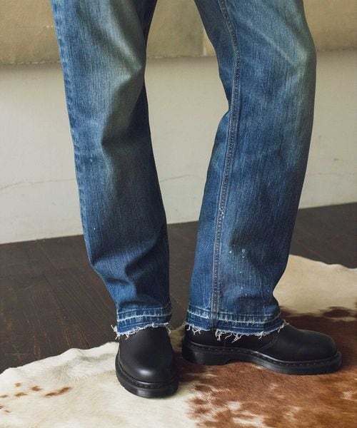 控えめなペンキ飛ばしやキズを施し、裾は加工後に解く仕様を採用しています。