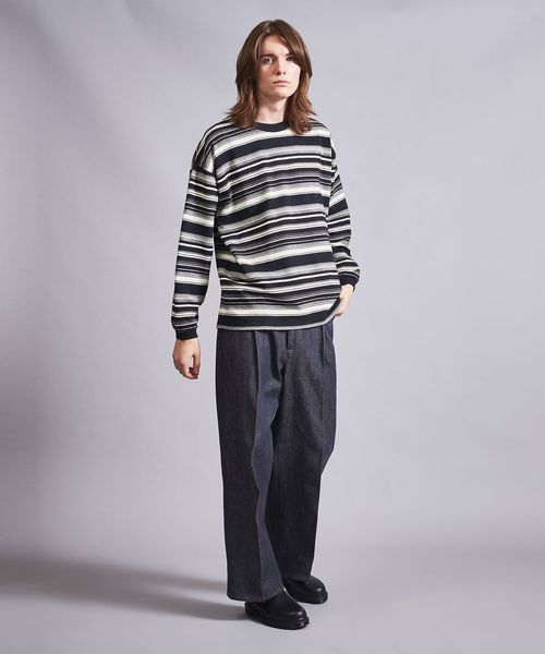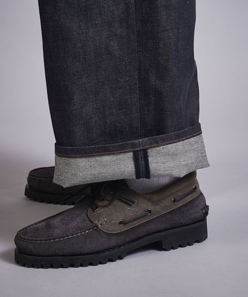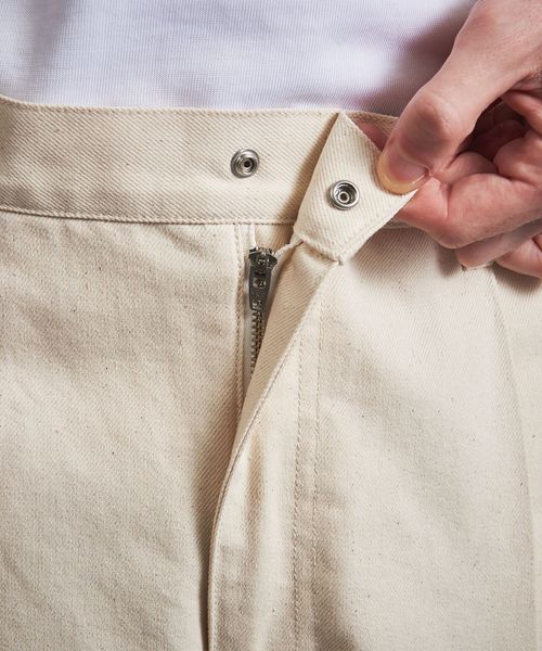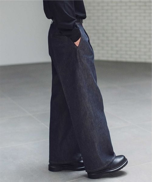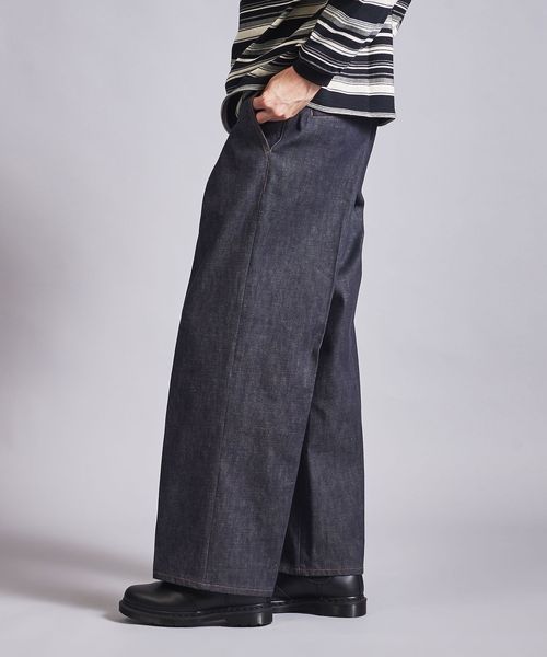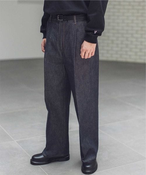 経年変化しにくいデニムを使用したワイドシルエットのデニムパンツ。
