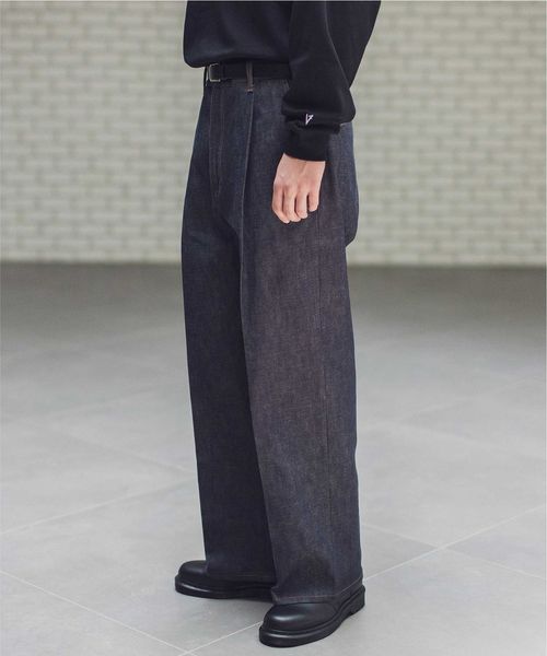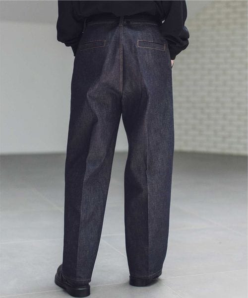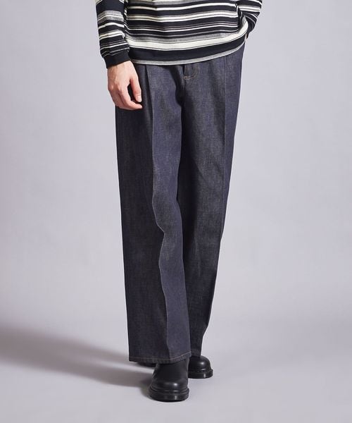 ワンプリーツ ストレート エイジレス デニム パンツ
